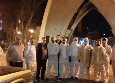 گروه جهادی دانشگاه علم و صنعت درقالب 10 گروه معابر شهر تهران را ضد عفونی می کند