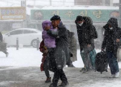 به دلیل بارش شدید برف در کره جنوبی و ژاپن، پرواز هواپیما ها و حرکت قطار ها مختل شده است.