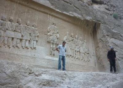 یک اثر تاریخی در معرض تخریب ، کوهنوردان از نقش برجسته قاجاری بالا می روند