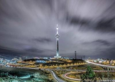 همزمان با بارش پاییزی باران در تهران، برج میلاد در غباری غلیظ از مه و ابر رفت.